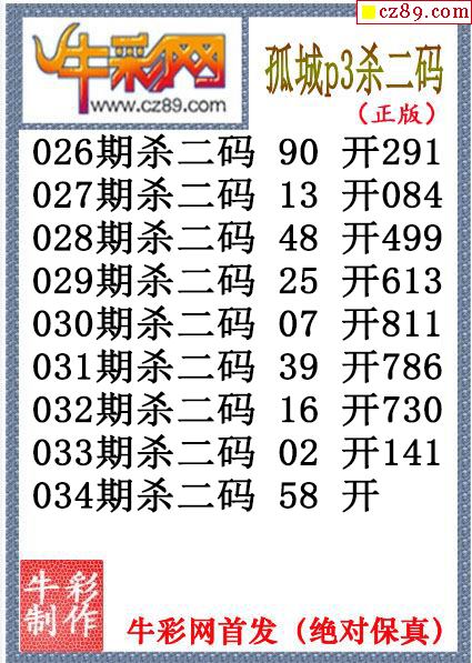 > 孤城杀码034期体彩P3图谜(原创)